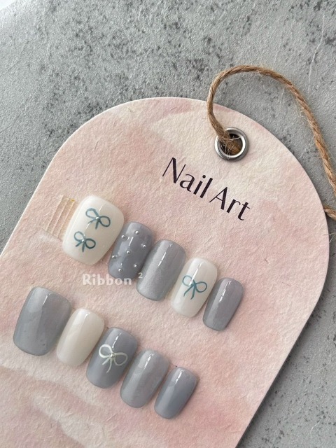 手繪蝴蝶結 x 立體珠珠 x 藍系貓眼