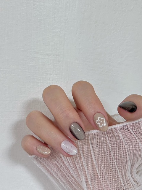 細閃貓眼 x 立體花花 x 手繪格紋