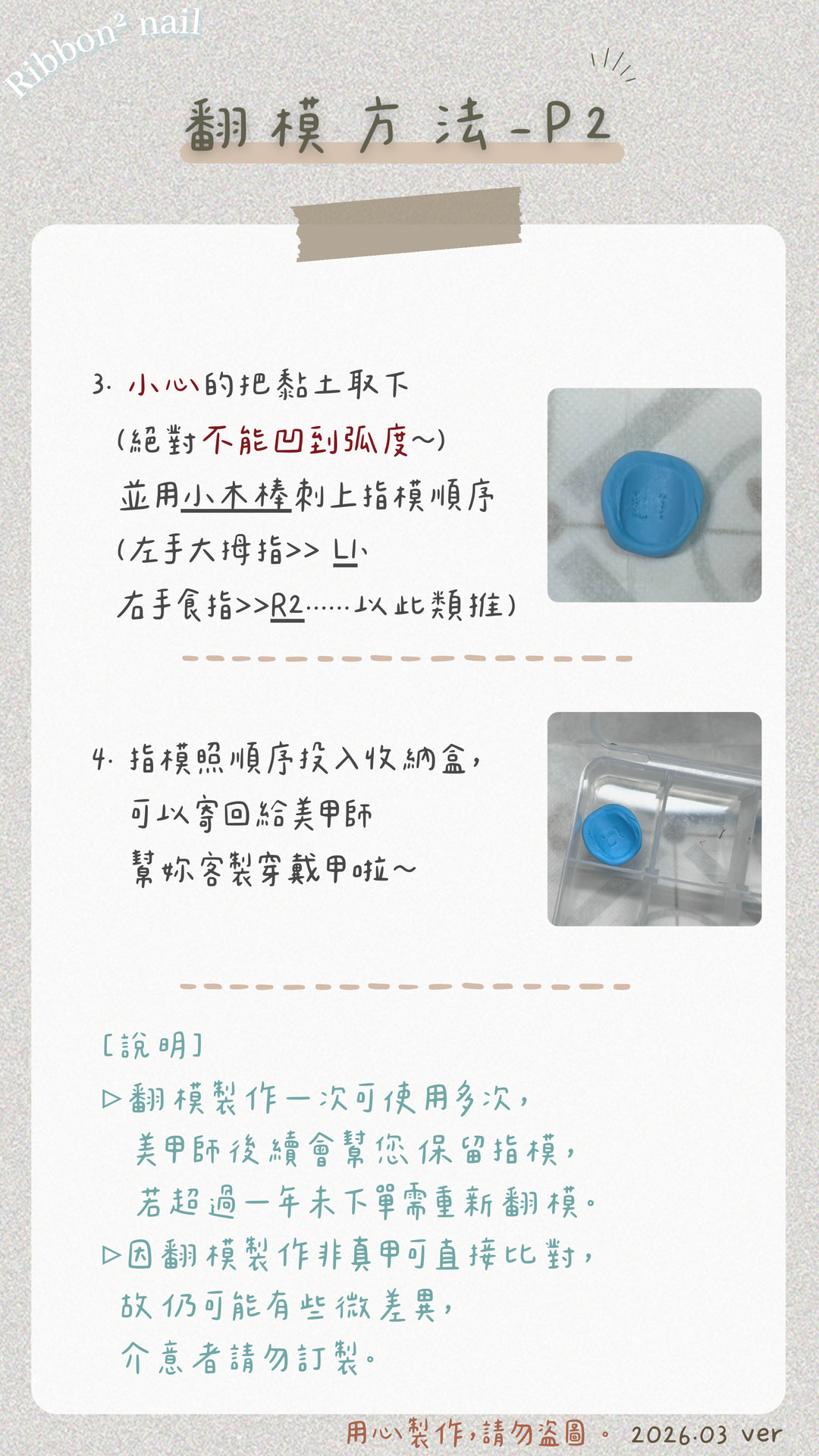 [工具包] ▹每副穿戴甲皆含一包工具包📦: 果凍貼*1入、磨棒*1、酒精棉片*1、木棒*1 [空白甲片] ▹平信免運>>僅限購買空白甲片 [修短、修窄] ▹修短、修窄2指(含)免費、第3指起1指+$15 [翻模] ▹翻模1:1訂製第一次$200 (寄回運費皆由賣家負擔) 之後每次1:1訂製,僅需付該次修甲費$100 若超過一年未下單則需重新翻模
